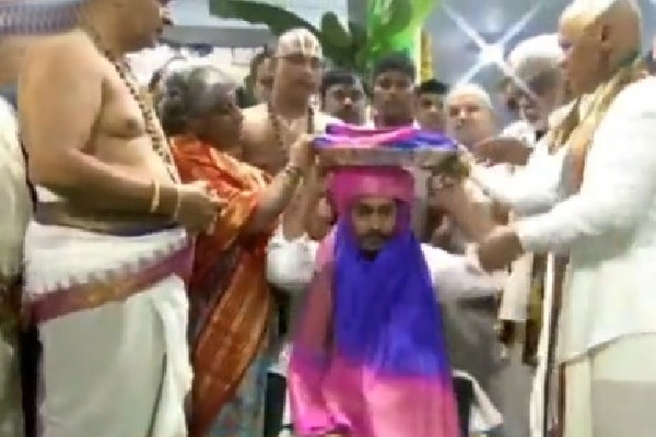 సంప్రదాయ దుస్తులు, పట్టు తలపాగా (పరికట్టం) ధరించిన సీఎం జగన్ తలపై పట్టువస్త్రాలు మోస్తూ స్వామివారి సన్నిధిలోకి ప్రవేశించారు. లాంఛనంగా పట్టువస్త్రాలను అందజేశారు. అనంతరం సీఎంకు ఆలయ వర్గాలు జ్ఞాపికలు, చిత్రపటాలను బహూకరించాయి. ఈ సందర్భంగా, టీటీడీ కాలెండర్లను సీఎం జగన్ ఆవిష్కరించారు. ఆలయ వర్గాలు అందించిన తీర్థప్రసాదాలను ముఖ్యమంత్రి సేవించారు. స్వామివారి సన్నిధిలో సీఎం జగన్ తో తులాభారం నిర్వహించారు.