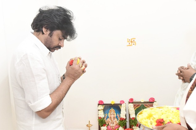 - సంప్రదాయబద్ధంగా పూజలో పాల్గొన్న పవన్