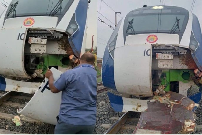 - గురువారమే నాలుగు గేదెలను ఢీకొన్న వందే భారత్ సెమీ హైస్పీడ్ ఎక్స్ ప్రెస్
