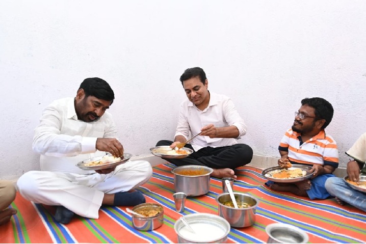 ఈ సందర్భంగా అంశాల స్వామి ఇంటిలోనే కేటీఆర్ మధ్యాహ్న భోజనం చేశారు. నేలపై చాప పరచగా దానిపై మరో మంత్రి జగదీశ్ రెడ్డితో కలిసి కూర్చున్న కేటీఆర్...అంశాల స్వామితో కలిసి భోజనం చేశారు. ఈ సందర్భంగా తన పక్కనే కూర్చున్న అంశాల స్వామికి భోజనాన్ని వడ్డించారు.