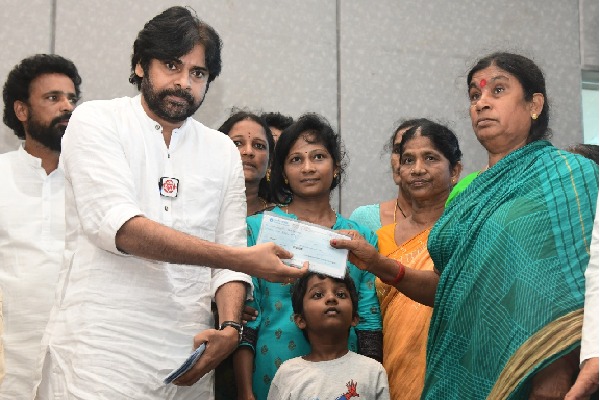 జనసేనాని పవన్ కల్యాణ్ విశాఖలోని నోవోటెల్ హోటల్ నుంచే తన కార్యకలాపాలు నిర్వహిస్తున్నారు. ప్రమాదవశాత్తు మరణించిన ఉత్తరాంధ్ర ప్రాంతానికి చెందిన జనసేన క్రియాశీలక సభ్యుల కుటుంబాలకు నేడు ఆర్థికసాయం అందించారు. ఒక్కొక్క కుటుంబానికి రూ.5 లక్షల చొప్పున 12 కుటుంబాలకు చెక్కులు అందజేశారు.
