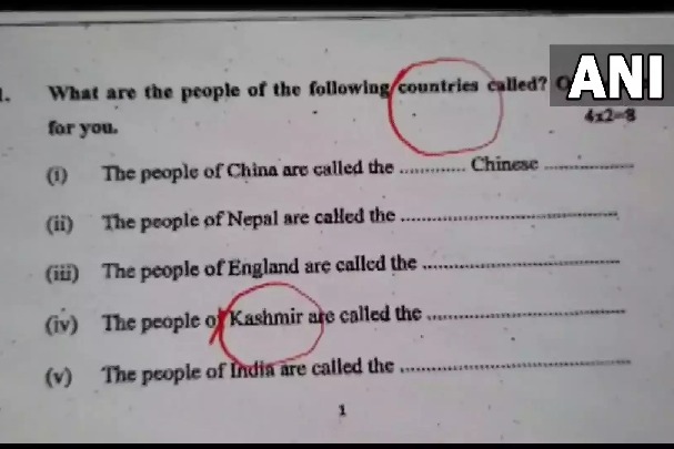 బీహార్ లోని ఓ స్కూల్ లో ఏడో తరగతి పరీక్షలు జరుగుతున్నాయి. ప్రశ్నాపత్రంలో వివిధ దేశాలు, అక్కడ నివసించే ప్రజలను ఏమంటారో చెప్పాలంటూ రెండు మార్కుల ప్రశ్నలు ఉన్నాయి. ఇందులో చైనా, నేపాల్, ఇంగ్లాండ్, ఇండియాలతో పాటు కశ్మీర్ ను ప్రత్యేక దేశంగా పేర్కొన్నారు. కశ్మీర్ దేశస్తులను ఏమంటారని ప్రశ్న కనిపించడంతో విద్యార్థులు అవాక్కయ్యారు.