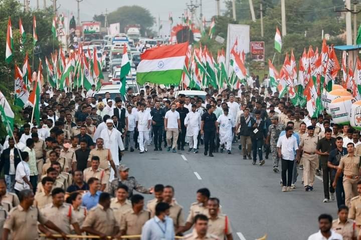 కాంగ్రెస్ పార్టీ ముఖ్య నేతల్లో ఒకరైన రాహుల్ గాంధీ కోయ గిరిజన తెగ ప్రజలతో మమేకం అయ్యారు. శనివారం మహబూబ్ నగర్ పట్టణం పరిధిలోని ధర్మాపూర్ నుంచి భారత్ జోడో యాత్ర (తెలంగాణలో నాలుగో రోజు) తిరిగి మొదలైంది. ఈ రోజు 20 కిలోమీటర్ల పొడవునా ఆయన పాదయాత్ర కొనసాగనుంది.