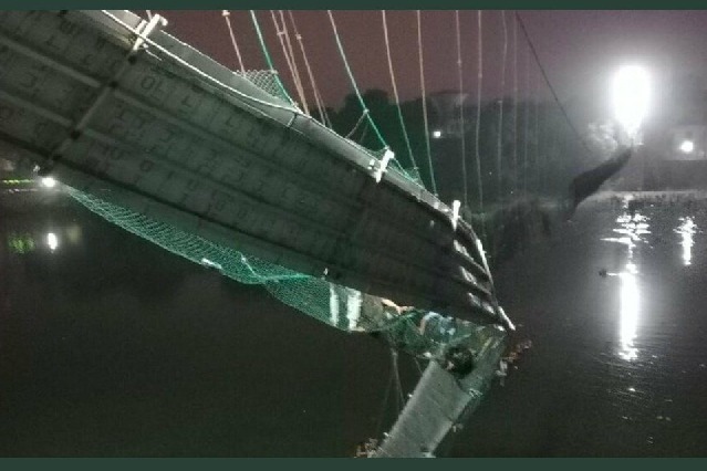 గుజరాత్ లోని మోర్బీలో మచ్చూ నదిపై ఉన్న ఓ కేబుల్ బ్రిడ్జి కూలిపోయింది. ఈ ప్రమాదంలో 32 మంది మృతి చెందగా, అనేకమందికి గాయాలయ్యాయి. ప్రమాద సమయంలో వంతెనపై 500 మంది ఉన్నట్టు పోలీసులు భావిస్తున్నారు. నదిలో పడిన అనేకమందిని సహాయక సిబ్బంది, పోలీసులు కాపాడారు.