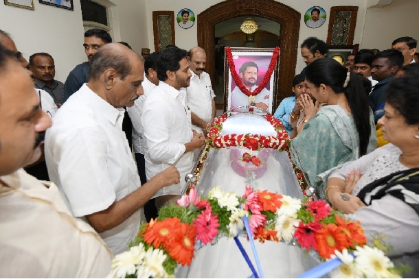 - భగీరథ రెడ్డి భౌతిక కాయానికి నివాళి అర్పించేందుకు అవుకు వెళ్లిన జగన్