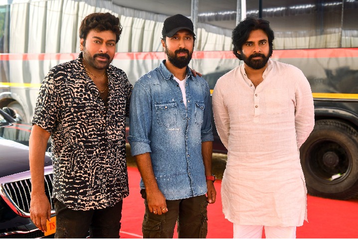 దీనికి సంబంధించిన ఫొటోలను చిత్రబృందం సోషల్ మీడియాలో పంచుకుంది. ఈ ఫొటోల్లో పవన్ కల్యాణ్, చిరంజీవిలతో పాటు 'వాల్తేరు వీరయ్య' దర్శకుడు బాబీ కూడా ఉన్నారు.
