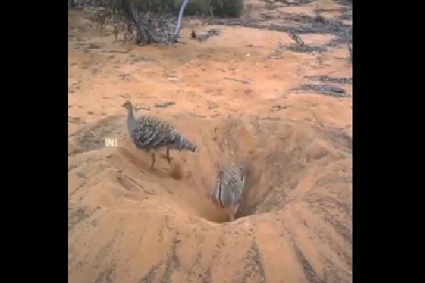 - ఒక పక్షి ఇసుక తవ్విపోస్తుంటే.. మరో పక్షి వెనక్కి నెడుతున్న తీరు