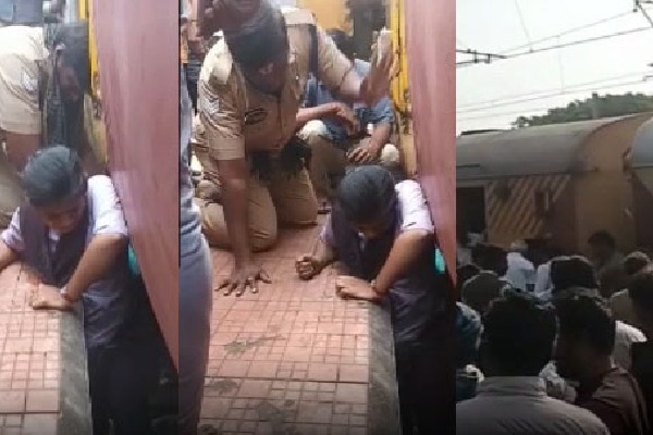 విశాఖపట్టణం జిల్లా దువ్వాడ రైల్వే స్టేషన్లో ఓ ఎంసీఏ విద్యార్థిని ఫ్లాట్ఫాం-రైలు మధ్య ఇరుక్కుపోయింది. బయటకు రాలేక రెండు గంటలపాటు అలాగే ఉండిపోయింది. చివరికి ప్లాట్ఫామ్ను బద్దలుగొట్టి ఆమెను రక్షించాల్సి వచ్చింది. పూర్తి వివరాల్లోకి వెళ్తే.. అన్నవరానికి చెందిన 20 ఏళ్ల శశికళ దువ్వాడలోని ఓ కాలేజీలో ఎంసీఏ ఫస్టియర్ చదువుతోంది. రోజువారీలానే గుంటూరు-రాయగడ ఎక్స్ప్రెస్ రైలులో దువ్వాడ చేరుకుంది. స్టేషన్లో దిగుతున్న సమయంలో ప్రమాదవశాత్తు ప్లాట్ఫామ్ కిందికి జారిపడింది. దీంతో ప్లాట్ఫామ్-రైలు మధ్య ఇరుక్కుపోయింది.