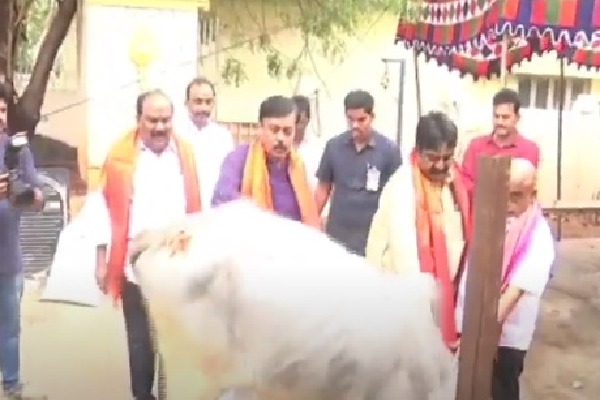 కార్యాలయం ప్రారంభోత్సవం కోసం అసోసియేషన్ వారు ఒక ఆవును తీసుకొచ్చారు. ఈ సందర్భంగా ఆవుకు నమస్కరించేందుకు వెళ్లగా అది ఆయనను తన్నింది. అయితే పెద్దగా దెబ్బ ఏమీ తగల్లేదు. మరోసారి మొక్కేందుకు ప్రయత్నించగా అది మరోసారి కాలు లేపింది. దీంతో, అక్కడున్న వారు ఆయనను పక్కకు తీసుకెళ్లారు. ఆ తర్వాత ఆయన అక్కడి నుంచి వెళ్లిపోయారు.