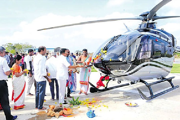 సాధారణంగా కొత్త వాహనాలను ప్రారంభించడానికి ముందు పూజలు చేయడం సర్వసాధారణ విషయమే. తెలంగాణలోని ప్రముఖ పుణ్యక్షేత్రమైన యాదాద్రిలో నిత్యం వాహన పూజలు జరుగుతుంటాయి. అయితే, తొలిసారి ఓ హెలికాప్టర్కు ఇక్కడ ప్రత్యేక పూజలు నిర్వహించారు.