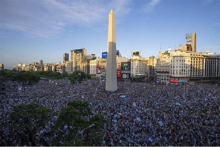 ఫుట్ బాల్ ప్రపంచ విజేతగా అర్జెంటీనా నిలవడంతో, ఆ దేశంలో సంబరాలు అంబరాన్నంటాయి. ఇసుక వేస్తే రాలనంతగా ప్రజలు సెంట్రల్ బ్యూనోస్ ఎయిర్స్ లోని ఒబెలిస్క్ వద్ద చేరిపోయారు. సుమారు 20 లక్షల మంది ప్రజలు ఒకే చోట చేరారు. విజయం తాలూకూ సంబరాల వీడియో ట్విట్టర్ పైకి చేరాయి.