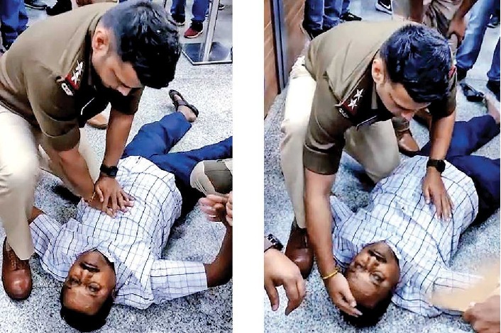 అహ్మదాబాద్ విమానాశ్రయంలో ఓ ప్రయాణికుడు గుండెపోటు కారణంగా కుప్పకూలిపోగా.. భద్రతా సిబ్బంది కాపాడారు. సదరు ప్రయాణికుడు ముంబై వెళ్లాల్సి ఉంది. గుండె పోటుతో పడిపోవడంతో విమానాశ్రయ భద్రతను చూసే కేంద్ర పారిశ్రామిక భద్రతా దళం (సీఐఎస్ఎఫ్) సబ్ ఇన్ స్పెక్టర్ కపిల్ రాఘవ్ చురుగ్గా స్పందించారు.