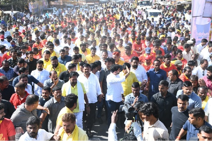 - పాదయాత్రలో భారీగా పాల్గొంటున్న టీడీపీ శ్రేణులు