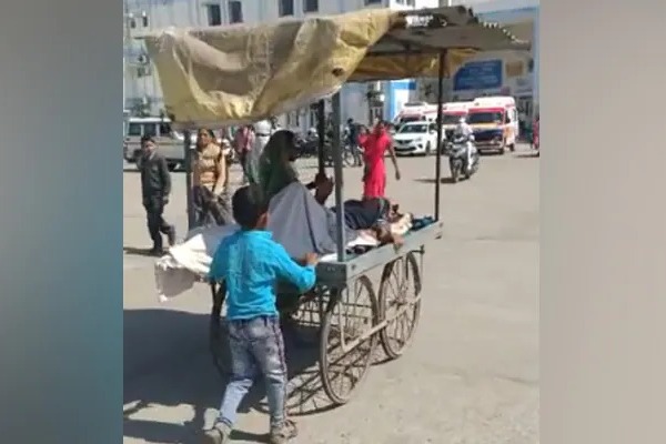 సింగ్రౌలీకి చెందిన షా కొంతకాలంగా అనారోగ్యంతో బాధపడుతున్నాడు. ఇటీవల అనారోగ్యం ఎక్కువ కావడంతో షాను ప్రభుత్వ ఆసుపత్రికి తీసుకెళ్లేందుకు ఆయన భార్య, ఆరేళ్ల కొడుకు ప్రయత్నించారు. అంబులెన్స్ కోసం ఆసుపత్రికి ఫోన్ చేయగా.. అటువైపు నుంచి స్పందనలేదు. నిరుపేద కుటుంబం కావడంతో ఆటోలో తీసుకెళ్లేంత సొమ్ము లేదు. ఏంచేయాలో తోచక చివరకు తోపుడు బండిపై షా ను ఆసుపత్రికి తీసుకెళ్లాలని తల్లీకొడుకులు నిర్ణయించారు. ఇద్దరూ కలిసి షా ను తోపుడు బండిపైకి చేర్చారు. ఆపై బండిని మూడు కిలోమీటర్ల దూరంలోని ప్రభుత్వ ఆసుపత్రికి తోసుకెళ్లారు.