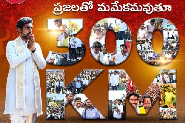 • 300 కిలోమీటర్ల మైలురాయిని చేరుకున్న నారా లోకేశ్