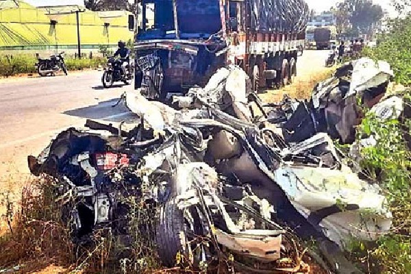 • లారీని ఢీకొట్టి తుక్కుగా మారిన కారు