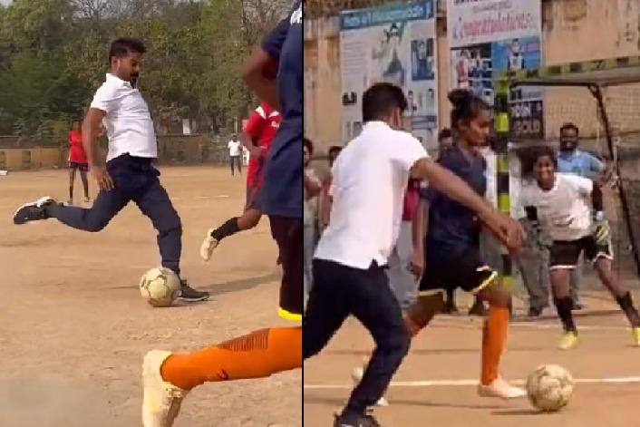 - గ్రౌండ్ లో ఉత్సాహంగా ఫుట్ బాల్ ఆడిన రేవంత్