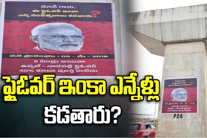 ‘‘పని ప్రారంభం: 05- మే-2018. 5 ఏండ్లు అయినా ఉప్పల్ - నారపల్లి ఫ్లై ఓవర్ 40 శాతం కూడా పూర్తి కాలేదు’’ అని పోస్టర్లపై రాసుకొచ్చారు. మధ్యలో మోదీ ఫొటోను ముద్రించారు. ఫ్లై ఓవర్ పిల్లర్లు అన్నింటికీ వీటిని అతికించారు. హైదరాబాద్ నుంచి వరంగల్ వెళ్లే జాతీయ రహదారిలో పిల్లర్లకు వీటిని గుర్తు తెలియని వ్యక్తులు అంటించారు. మేడిపల్లి పోలీస్ స్టేషన్ పరిధిలోని ఉన్న ఫ్లైఓవర్ పిల్లర్లపైనా పోస్టర్లు కనిపించాయి.