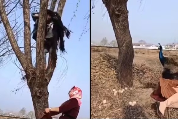 Viral Videos: నెమలి గుడ్లు దొంగిలించేందుకు చెట్టెక్కిన మహిళకు ఊహించని గుణపాఠం