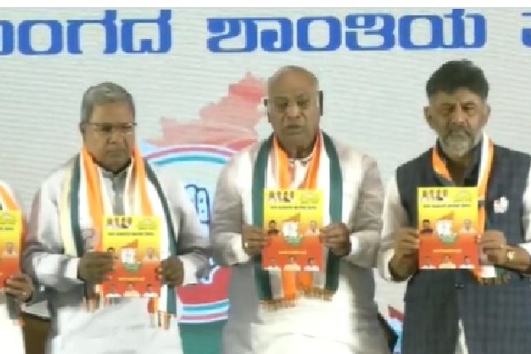 కర్ణాటక అసెంబ్లీ ఎన్నికలకు సమయం దగ్గర పడుతోంది. ఈ నెల 10న పోలింగ్ జరగనుంది. ఈ నేపథ్యంలో కాంగ్రస్ పార్టీ ఎన్నికల మేనిఫెస్టోను విడుదల చేసింది. కాంగ్రెస్ జాతీయ అధ్యక్షుడు మల్లికార్జున ఖర్గే, మాజీ ముఖ్యమంత్రి సిద్ధరామయ్య, పీసీసీ అధ్యక్షుడు డీకే శివకుమార్ తదితర నేతలు మేనిఫెస్టో విడుదల కార్యక్రమంలో పాల్గొన్నారు. ఓటర్లను ఆకట్టుకునే విధంగా మేనిఫెస్టోను రూపొందించారు. ముఖ్యంగా గ్యారంటీ కార్డ్ పేరుతో మహిళలు, నిరుద్యోగులను ఆకట్టుకునేలా మేనిఫెస్టోలో హామీలను గుప్పించారు. గ్యారంటీ కార్డ్ హామీల్లో గృహజ్యోతి, గృహలక్ష్మి, అన్న భాగ్య, యువనిధి, యువశక్తి ఉన్నాయి.