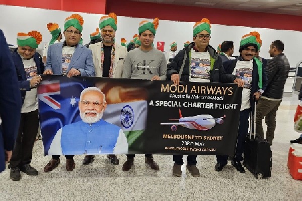 భారత ప్రధాన మంత్రి నరేంద్ర మోదీకి ప్రపంచవ్యాప్తంగా క్రేజ్ పెరిగిపోతోంది. ఆయన ఏ దేశానికి వెళ్లినా అక్కడున్న భారత సంతతి ప్రజలు పెద్ద సంఖ్యలో కలిసేందుకు వస్తున్నారు. తాజాగా ఆస్ట్రేలియాలో పర్యటిస్తున్న మోదీని కలిసేందుకు ఏకంగా ఓ విమానాన్ని బుక్ చేసుకుని మరీ వచ్చారు. సోమవారం రాత్రి మెల్ బోర్న్ నుంచి సిడ్నీకి ప్రయాణించారు. తాము ప్రయాణించిన విమానానికి మోదీ ఎయిర్ వేస్ అని పేరుపెట్టుకున్నారు.