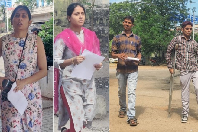 - అభ్యర్థులను క్షుణ్ణంగా తనిఖీ చేసి లోపలికి పంపిన అధికారులు