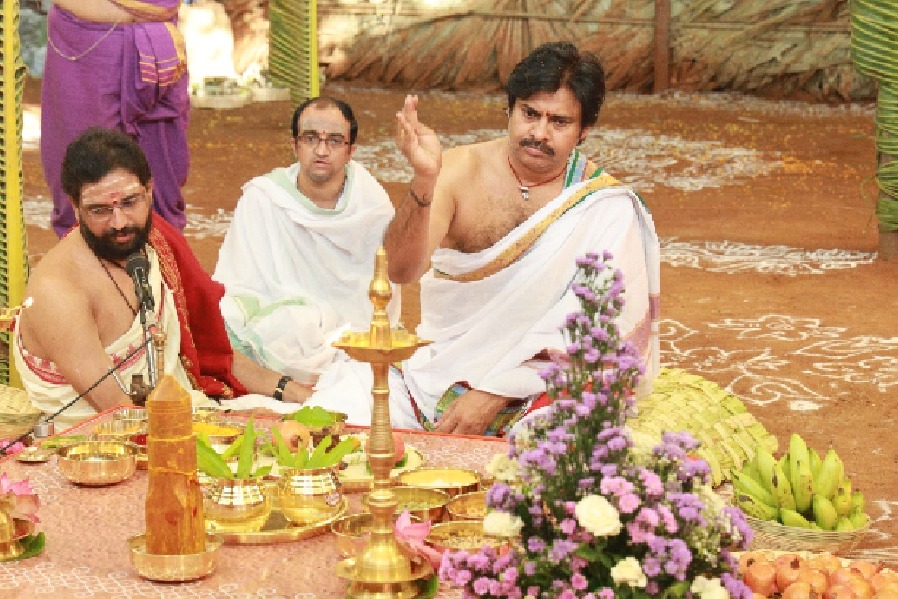 - గణపతి పూజతో యాగానికి అంకురార్పణ చేసిన జనసేన అధినేత