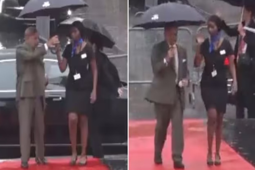 - ఇంతలో వర్షం మొదలు, ప్రధానికి గొడుగు పట్టిన మహిళా అధికారి