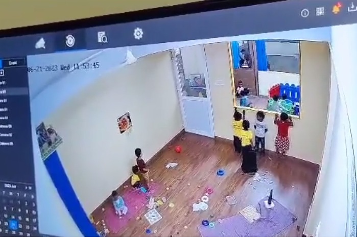 క్లాస్ రూంలో నుంచి ఓ టీచర్ లేదా ఆయా బయటకు వెళ్లడంతో ఓ బాలుడు మరో చిన్నారిని కొడుతూ హింసించడం మొదలుపెట్టాడు. మధ్యలో క్లాస్ రూం కిటికీలో నుంచి టీచర్ వస్తున్నది లేనిదీ చూసుకుంటూ పదే పదే చిన్నారిపై దాడి చేశాడు. ఆ చిన్నారిని కింద పడేసి కాళ్లతో తన్నడం, మెడ కొరకడం సీసీటీవీ ఫుటేజీలో చూసి చిన్నారి తల్లి కన్నీటిపర్యంతమైంది. పిల్లలను అలా వదిలేసి వెళ్లడంపై తల్లిదండ్రులు యాజమాన్యాన్ని నిలదీశారు. తలుపు వేసి ఉన్న రూంలో పిల్లలను ఎలా వదిలేశారని మండిపడ్డారు. ఈ ఘటనపై పోలీసులకు ఫిర్యాదు చేశారని, చట్టప్రకారం స్కూలు యాజమాన్యంపై చర్యలు తీసుకుంటామని పోలీసులు తెలిపారు.