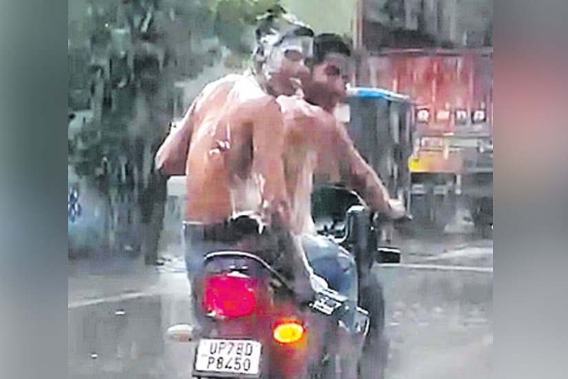 Uttar Pradesh: వానలో బైక్పై వెళుతూ సబ్బు రుద్దుకుని యువకుల స్నానం