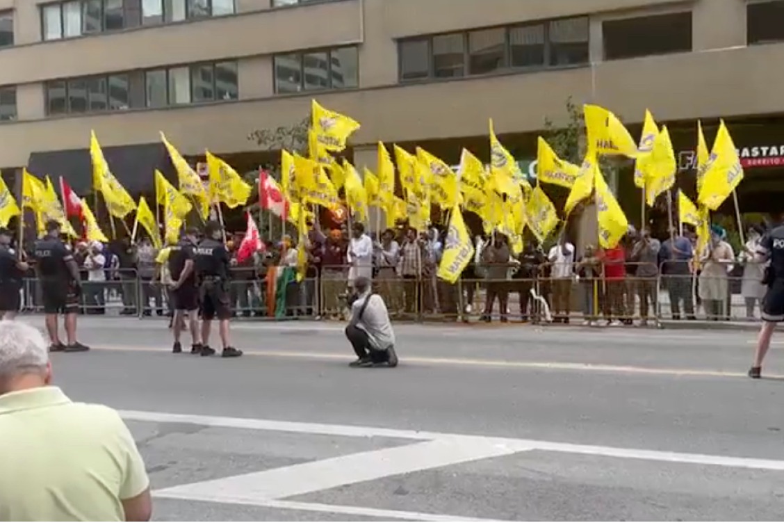 కెనడాలోని టొరంటోలో ఉన్న భారత రాయబార కార్యాలయం ఎదుట ఖలిస్థాన్ మద్దతుదారులు ప్రదర్శన చేపట్టారు. దీనికి ప్రతిగా మువ్వన్నెల జెండాలతో భారతదేశ మద్దతుదారులు ప్రదర్శన నిర్వహించారు. కెనడా కాలమానం ప్రకారం శనివారం ఈ ఘటన చోటుచేసుకుంది. తొలుత ఖలిస్థాన్ మద్దతుదారులు జెండాలతో భారత రాయబార కార్యాలయం చేరుకుని నినాదాలు చేశారు. ఈ ప్రదర్శనపై మండిపడ్డ భారత సంతతి ప్రజలు త్రివర్ణ పతాకాలతో అక్కడికి చేరుకుని ప్రదర్శన చేశారు.
