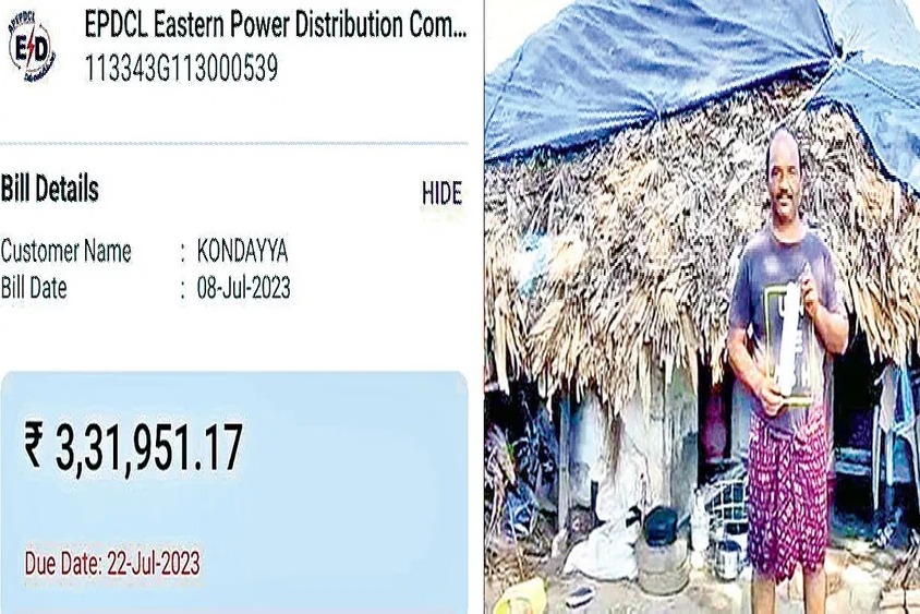 అనకాపల్లి జిల్లాలోని ఎస్ రాయవరం పరిధిలోని గోకులపాడు దళిత కాలనీలో ఓ పూరి గుడిసెలో రాజుబాబు అనే వ్యక్తి కుటుంబంతో కలిసి ఉంటున్నాడు. ఆటో నడుపుతూ కుటుంబాన్ని పోషించుకుంటున్నారు. అయితే, ఈ నెల కరెంట్ బిల్లు ఏకంగా రూ.3,31,951 లు రావడంతో రాజుబాబు కుటుంబం షాక్ అయింది. ఇంత చిన్న పూరి గుడిసెకు అంత పెద్ద మొత్తంలో కరెంట్ బిల్లు రావడమేంటని అధికారులను ఆశ్రయించారు.