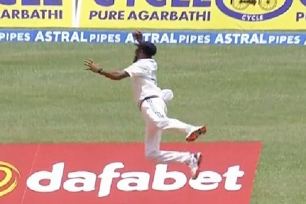 వెస్టిండీస్ తో బుధవారం మొదలైన తొలి టెస్టులో భారత్ హవా నడిచింది. స్పిన్నర్ రవిచంద్రన్ అశ్విన్ తన స్పిన్ మాయాజాలంతో కరీబియన్లను ఉక్కిరిబిక్కిరి చేశాడు. అతను ఐదు వికెట్లతో చెలరేగడంతో టాస్ గెలిచి బ్యాటింగ్ కు వచ్చిన విండీస్ తొలి ఇన్నింగ్స్లో 150 పరుగులకే ఆలౌటైంది. మరో స్పిన్నర్ రవీంద్ర జడేజా మూడు వికెట్లు తీశాడు. హైదరాబాద్ పేసర్ మహ్మద్ సిరాజ్ ఒకే వికెట్ తీసినా తన సూపర్ ఫీల్డింగ్ తో అతను వార్తల్లో నిలిచాడు. సూపర్ మ్యాన్ ను తలపించిన ఫీల్డింగ్ తో అతను ఓ కళ్లు చెదిరే క్యాచ్ పట్టాడు. 28వ ఓవర్లో జడేజా వేసిన బంతిని జెర్మైన్ బ్లాక్వుడ్ మిడాఫ్ దిశగా గాల్లోకి లేపాడు.