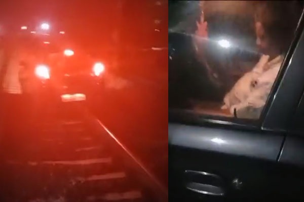 - ట్రాక్పై ఇరుక్కుపోయిన కారు