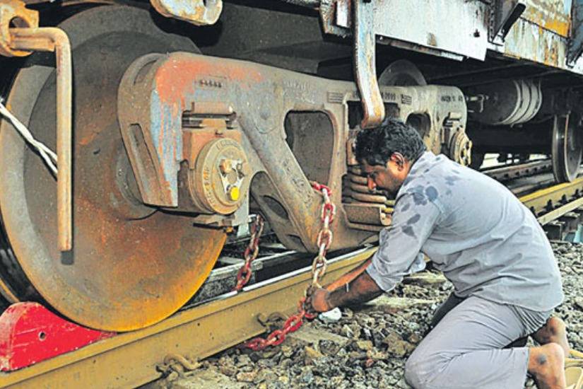 - రైలు బ్రేకులను లాక్ చేసి, చక్రాలను గొలుసుతో పట్టాలకు కట్టేసిన సిబ్బంది