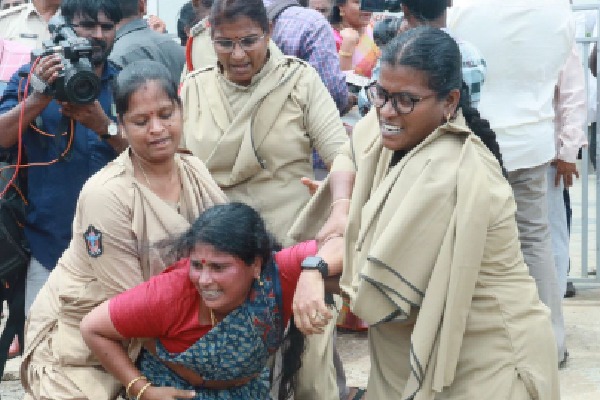• పోలీసులు-కార్యకర్తల మధ్య తోపులాట, అరెస్ట్