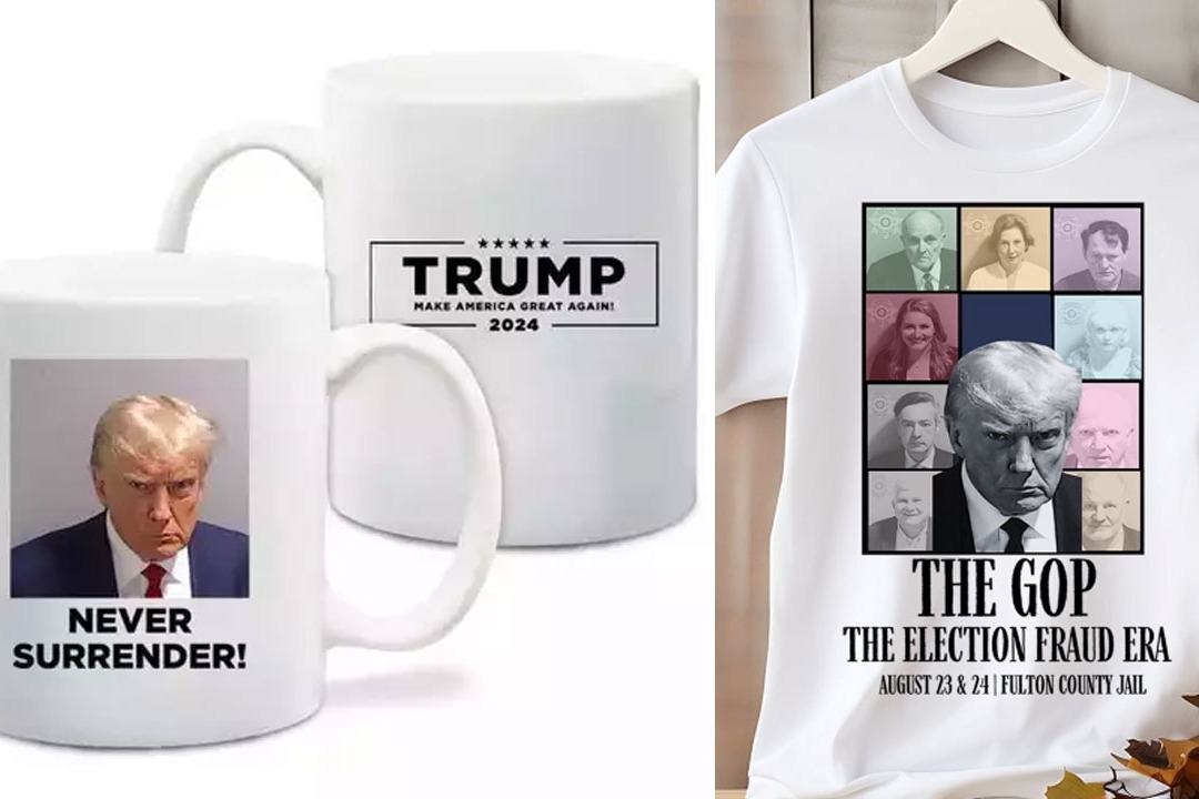 - టీషర్టులు, కాఫీ మగ్లు, బీర్ కూజీలు తదితర వాటిపై ట్రంప్ మగ్షాట్ ఫొటో