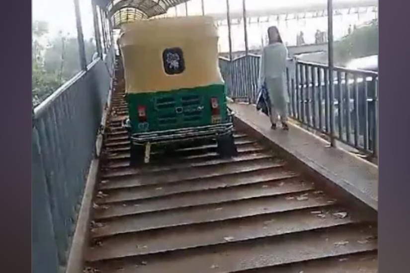 New Delhi: ఫుట్ ఓవర్ బ్రిడ్జ్పై ఆటో తోలిన యువకుడు..!