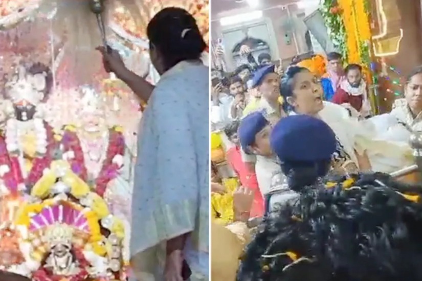 చివరకు ఆమె కాలు జారి కిందపడటంతో నానా రభస జరిగింది. దీంతో పోలీసులు రంగ ప్రవేశం చేసి మాజీ మహారాణి జితేశ్వరీ దేవిని దేవాలయం నుంచి బయటకు ఈడ్చేశారు. ఇందుకు సంబంధించి వీడియో సోషల్ మీడియాలో వైరల్గా మారింది. కాగా, మద్యం మత్తులో దేవాలయానికి వచ్చిన జితేశ్వరీ దేవి ఆలయ అధికారులతో వాగ్వాదానికి దిగారని ఘటన సమయంలో అక్కడున్న వారు ఆరోపించారు. పోలీసులు జితేశ్వరీదేవిపై కేసు కూడా నమోదు చేశారు.