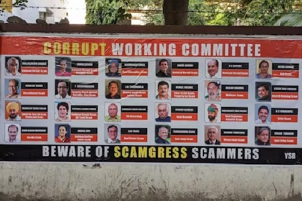 కరప్ట్ వర్కింగ్ కమిటీ పేరుతో వెలిసిన ఈ పోస్టర్లలో సోనియా, రాహుల్, ప్రియాంక గాంధీలతో పాటు మాజీ ప్రధాని మన్మోహన్ సహా కీలక నేతల ఫొటోలు ఉన్నాయి. ఆ ఫొటోల కింద వారు ఆరోపణలు ఎదుర్కొంటున్న స్కామ్ ల వివరాలను ముద్రించారు. కాంగ్రెస్ జాతీయ అధ్యక్షుడు మల్లకార్జున ఖర్గే సహా మొత్తం 24 మంది సీడబ్ల్యూసీ సభ్యుల పేర్లు, ఫొటోలు ఉన్నాయి. ఫొటోల కింద బివేర్ ఆఫ్ స్కామర్స్ అంటూ హెచ్చరికలను కూడా ముద్రించారు. ఈ హెచ్చరికల పక్కనే వైఎస్ఆర్ అన్న అక్షరాలు కూడా ఉన్నాయి. ఈ పోస్టర్లను ఎవరు ముద్రించారు, గోడలపై అతికించింది ఎవరనే వివరాలు తెలియరాలేదు.