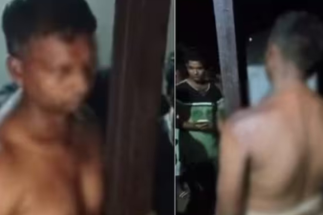 - అతడి దుస్తులు తొలగించి, స్తంభానికి కట్టేసి కొట్టిన వైనం
