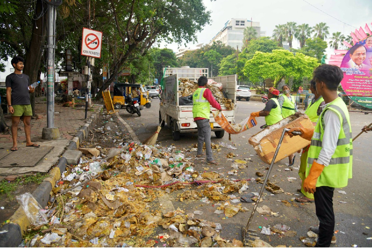 - శుభ్రం చేస్తున్న జీహెచ్ఎంసీ సిబ్బంది