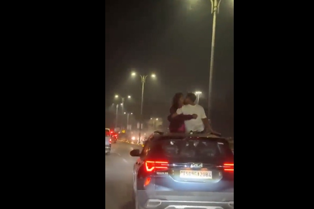 - కారుపైకి చేరి ముద్దులతో ఊగిపోయిన ప్రేమ జంట
