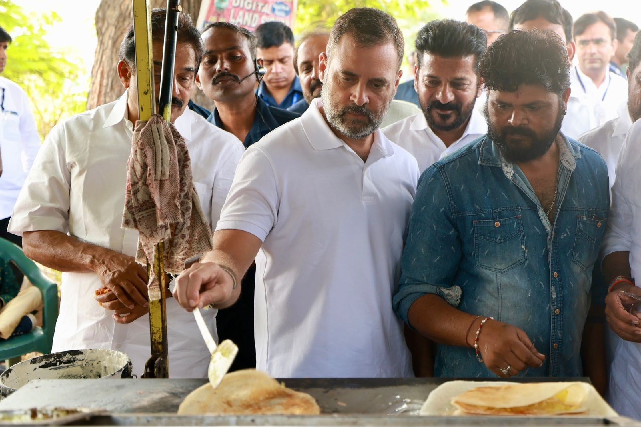 పెనంపై పిండి వేసి, మసాలా దోశ తయారు చేశారు. తాను సైతం దోశ వేయగలనని నిరూపించుకున్నారు. రాహుల్ చర్య స్థానికులను ఆకర్షించింది. హోటల్ నిర్వాహకుడికి ఎంత ఆదాయం వస్తోంది, ఎదుర్కొంటున్న సమస్యల గురించి అడిగి తెలుసుకున్నారు. తెలంగాణలో రాహుల్ యాత్ర మూడో రోజుకు చేరుకుంది. గురువారం రాత్రి కరీంనగర్ లో బస చేసిన ఆయన, శుక్రవారం ఉదయం జగిత్యాలకు ప్రయాణమయ్యారు. విజయభేరి బస్సు యాత్రలో భాగంగా నేడు ఆర్మూరులోనూ రాహుల్ పర్యటించనున్నారు. ఆ తర్వాత ఢిల్లీకి తిరుగు ప్రయాణం అవుతారు.