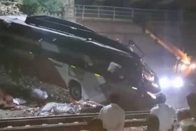 - అదుపు తప్పి వంతెనపై నుంచి రైలు పట్టాలపై పడ్డ బస్సు