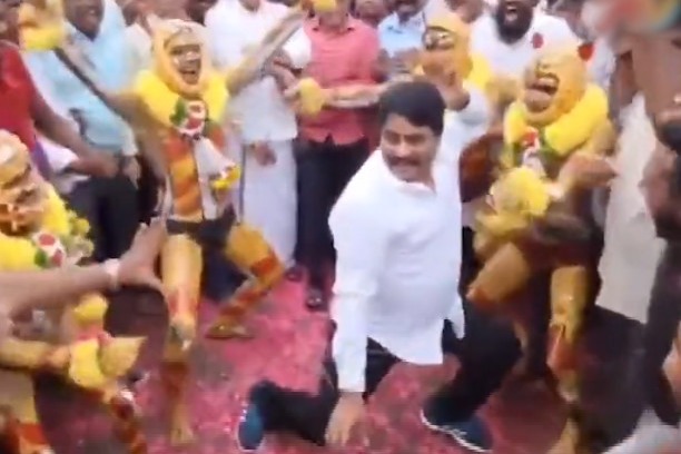 Biyyapu Madhusudan Reddy: దసరా పులి డ్యాన్సుతో అదరగొట్టిన శ్రీకాళహస్తి ఎమ్మెల్యే... వీడియో ఇదిగో!