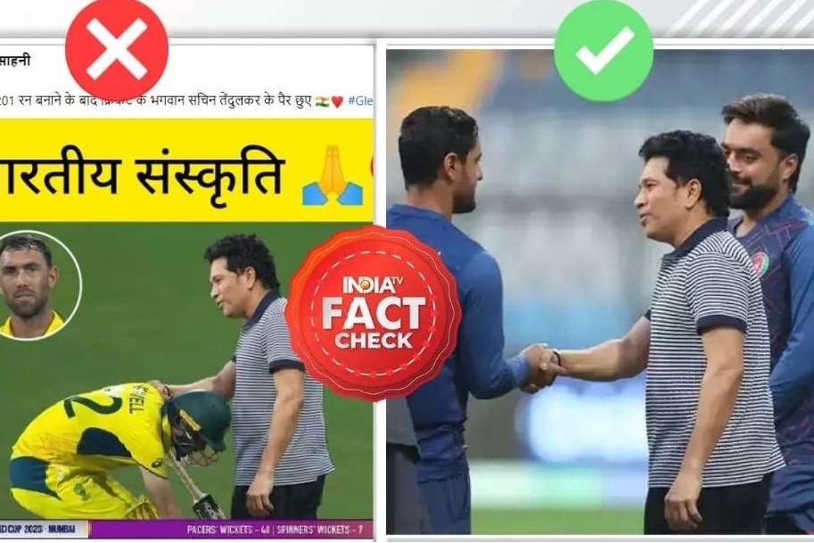 అనారోగ్యంతో బాధపడుతున్నా లెక్క చేయకుండా ఆఫ్ఘనిస్థాన్ తో జరిగిన మ్యాచ్ లో ఆస్ట్రేలియా క్రికెటర్ మ్యాక్స్ వెల్ ఆటను క్రికెట్ అభిమానులు మర్చిపోలేరు. అయితే, ఈ మ్యాచ్ తర్వాత సచిన్ టెండూల్కర్ కు మ్యాక్స్ వెల్ పాదాలకు నమస్కరించాడని ప్రచారం జరుగుతోంది. ఇందుకు సంబంధించి ఓ ఫొటో వైరల్ గా మారింది. ఈ ఫొటో నిజం కాదని, మార్పింగ్ చేశారని తాజాగా బయటపడింది.