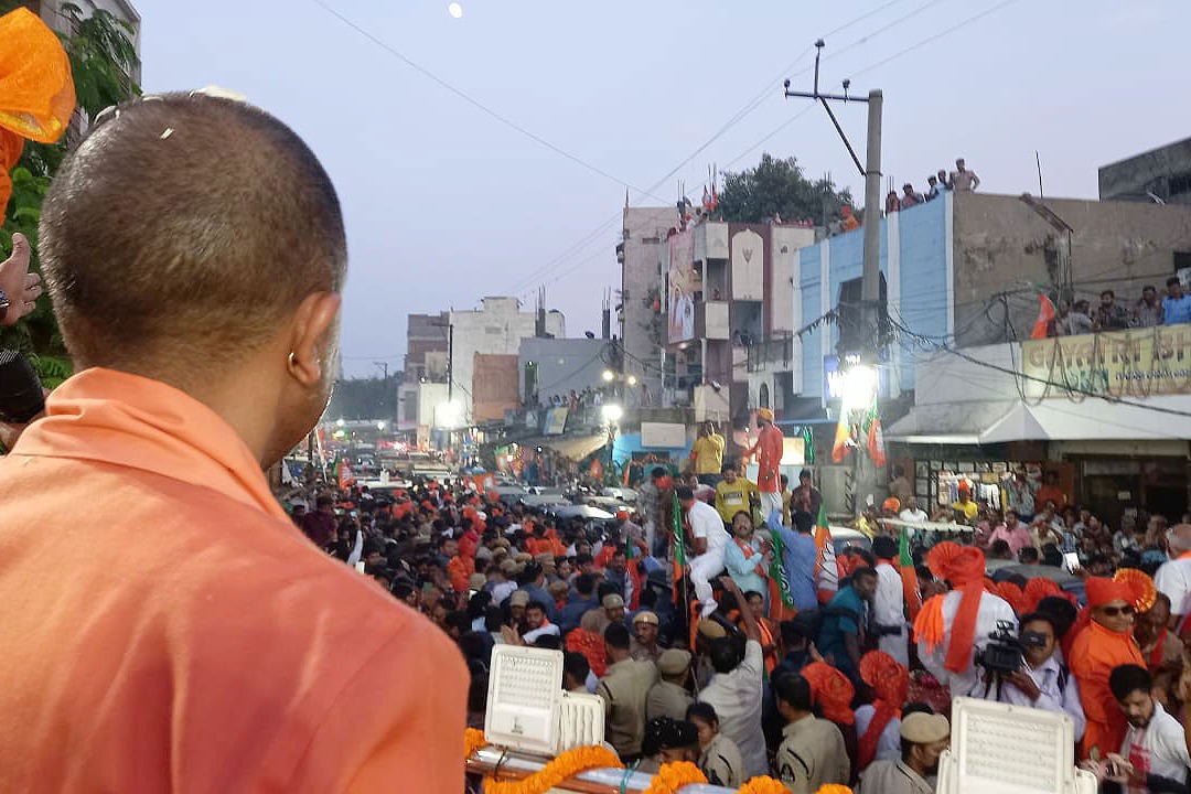 కాగా హైదరాబాద్లో బీజేపీ శనివారం నిర్వహించిన పలు ప్రచార కార్యక్రమాల్లో యోగి ఆదిత్య నాథ్ పాల్గొన్నారు. మంగళ్ హట్లో ఆకాశపురి హనుమాన్ ఆలయంలో ప్రత్యేక పూజలు నిర్వహించారు. అనంతరం పురానాపూల్ గాంధీ విగ్రహం వరకు రోడ్ షో నిర్వహించారు. జుమ్మెరాత్ బజార్ చౌరస్తా వద్ద రోడ్డుకు ఇరువైపులా 6 బుల్డోజర్లను ఏర్పాటు చేసి సీఎం యోగి, బీజేపీ గోషామహల్ అభ్యర్థి రాజాసింగ్లపై పూల వర్షం కురిపించారు.