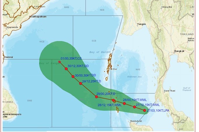 అండమాన్ సముద్రం, మలక్కా జలసంధిని ఆనుకుని అల్పపీడనం ఏర్పడిందని భారత వాతావరణ సంస్థ (ఐఎండీ) వెల్లడించింది. ఇది పశ్చిమ వాయవ్య దిశగా పయనించి ఆగ్నేయ బంగాళాఖాతంలోకి ప్రవేశిస్తుందని, ఈ నెల 29 నాటికి వాయుగుండంగా బలపడనుందని తెలిపింది. అక్కడ్నించి వాయవ్య దిశగా పయనించి 48 గంటల్లో తుపానుగా మారుతుందని ఐఎండీ వివరించింది. దీని ప్రభావం డిసెంబరు 1 నుంచి భారత తీర ప్రాంతంపై కనిపిస్తుందని తెలుస్తోంది. ప్రస్తుతానికి అల్పపీడన ప్రభావం అండమాన్ దీవులపై అధికంగా ఉండనుంది.