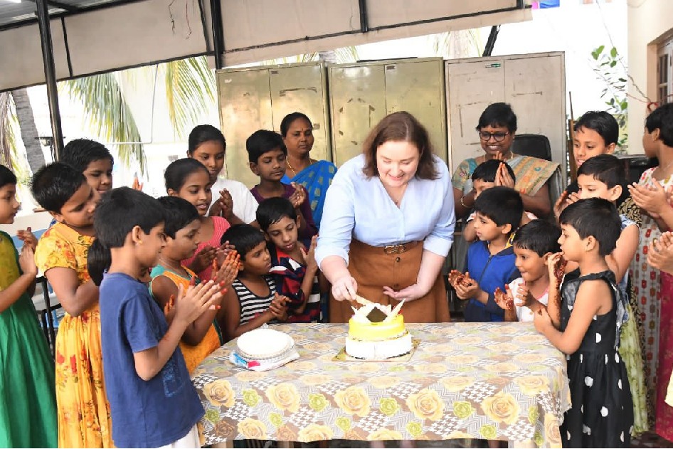 - అక్కడి చిన్నారుల నడుమ కేక్ కట్ చేసి సంబరాలు